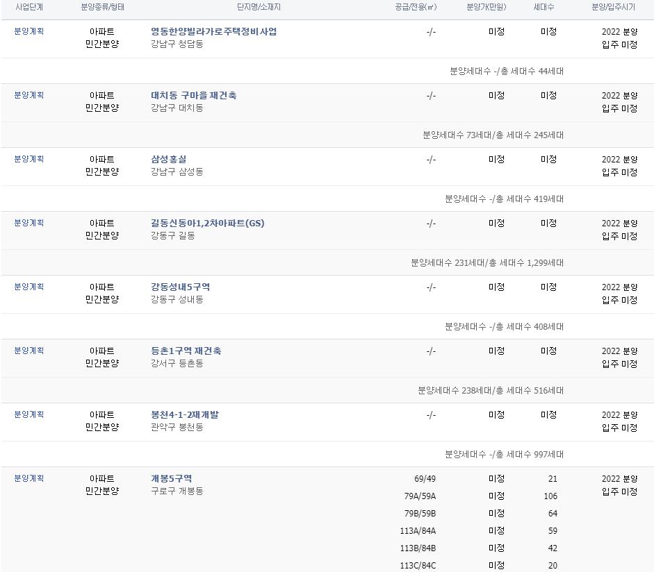 분양예정시기등은 변동될수 있으니 서울시 부동산정보 홈페이지에서 실시간으로 확인하시는게 좋습니다.