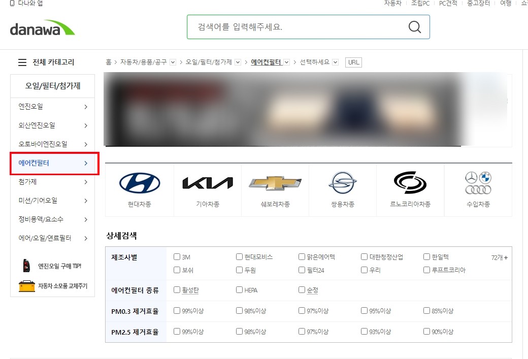 다나와 홈페이지에서 [에어컨필터]카테고리도 접속합니다.