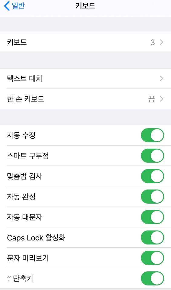 잘 활용하면 유용하게 잘 쓸수 있는 기능이지만 아직은 오타도 많이나고 단어도 전혀 다른 방향으로 바꿔 말해서 아이폰을 처음 구매할때 항상 먼저 끄는 기능 중 하나 입니다.