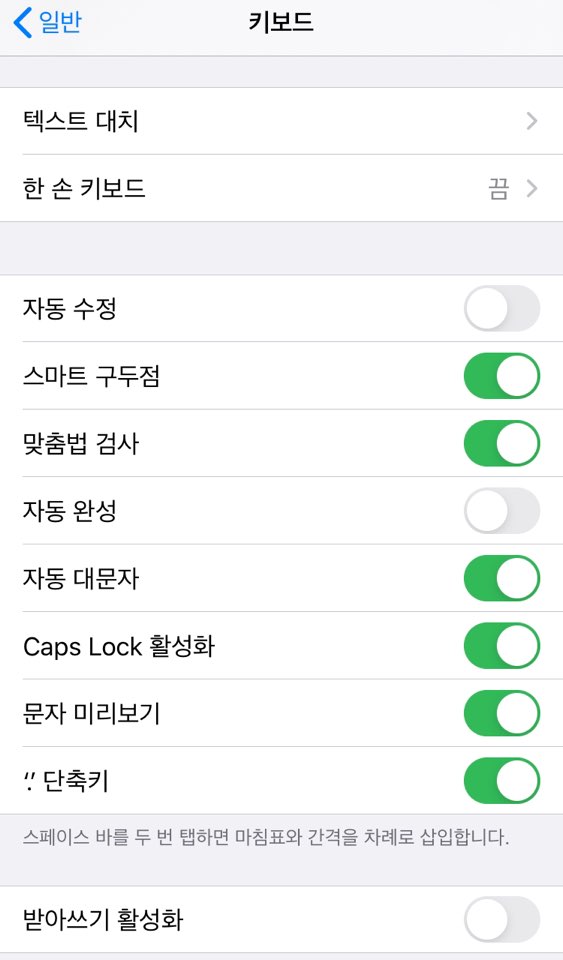 키보드 메뉴로 들어가면 자동수정,자동완성,자동대문자,문자미리보기 등 많은 기능이 다 켜져 있는데요.