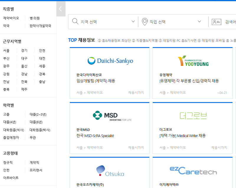 우선 데일리팜은 구인구직 사이트가 아닌 의약관련 언론 미디어 사이트 입니다.