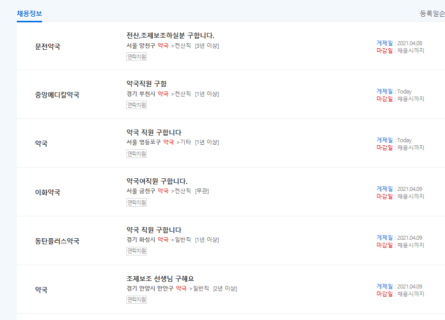 약국전용 카테고리도 따로 있어서 약국에 취업하고 싶은 분들의 구인구직도 쉽게 알아볼수 있습니다.