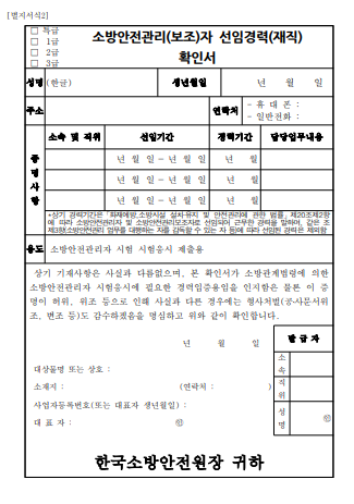소방안전관리자 선임기준,자격 경력 확인,선임 신고 방법(신고서 예시 서식)