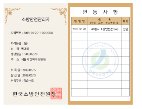 소방안전관리자는 한국소방안전원에서 발급하는 소방청 국가전면자격증입니다.