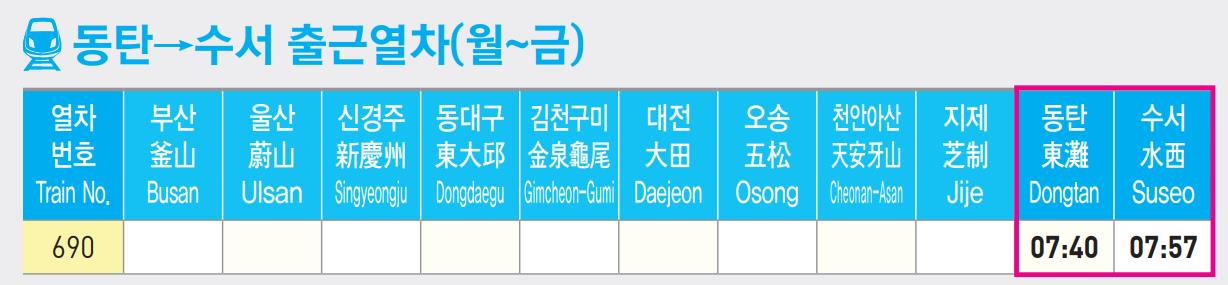 동탄역에서 7시 40분에 출발하면 수서역에 7시 57분에 도착합니다.